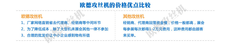 安丘市歐德機械有限公司是山東省有名的電動攻絲機生產研發制造企業,公司常年對外供應多種數控攻絲機產品并提供相應的技術指導和售后服務,公司發展進取氣動攻絲機制造技術,在螺紋鋼上絲機產品技術層面獲得多次改進,公司的鋼筋上絲機產品質量也發生了質的飛躍。